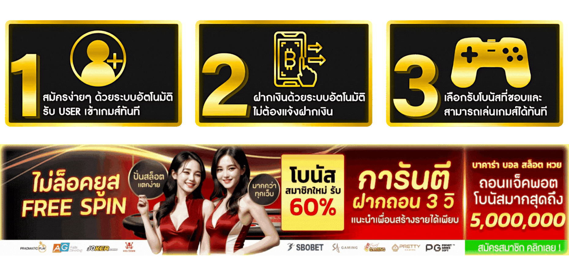 ตอบ : มีโบนัสต้อนรับ 100% สำหรับสมาชิกใหม่ เครดิตฟรี คืนยอดเสีย และแจกเครดิตวันเกิด